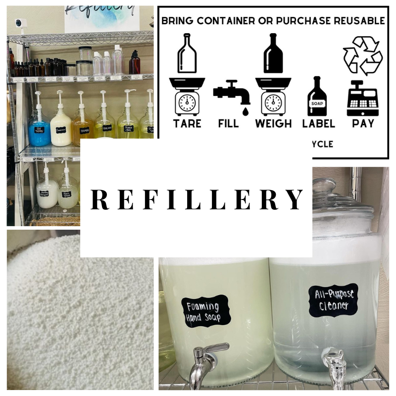Discover the essence of sustainability at our storefront with our' refillery, where you can refill your favorites.