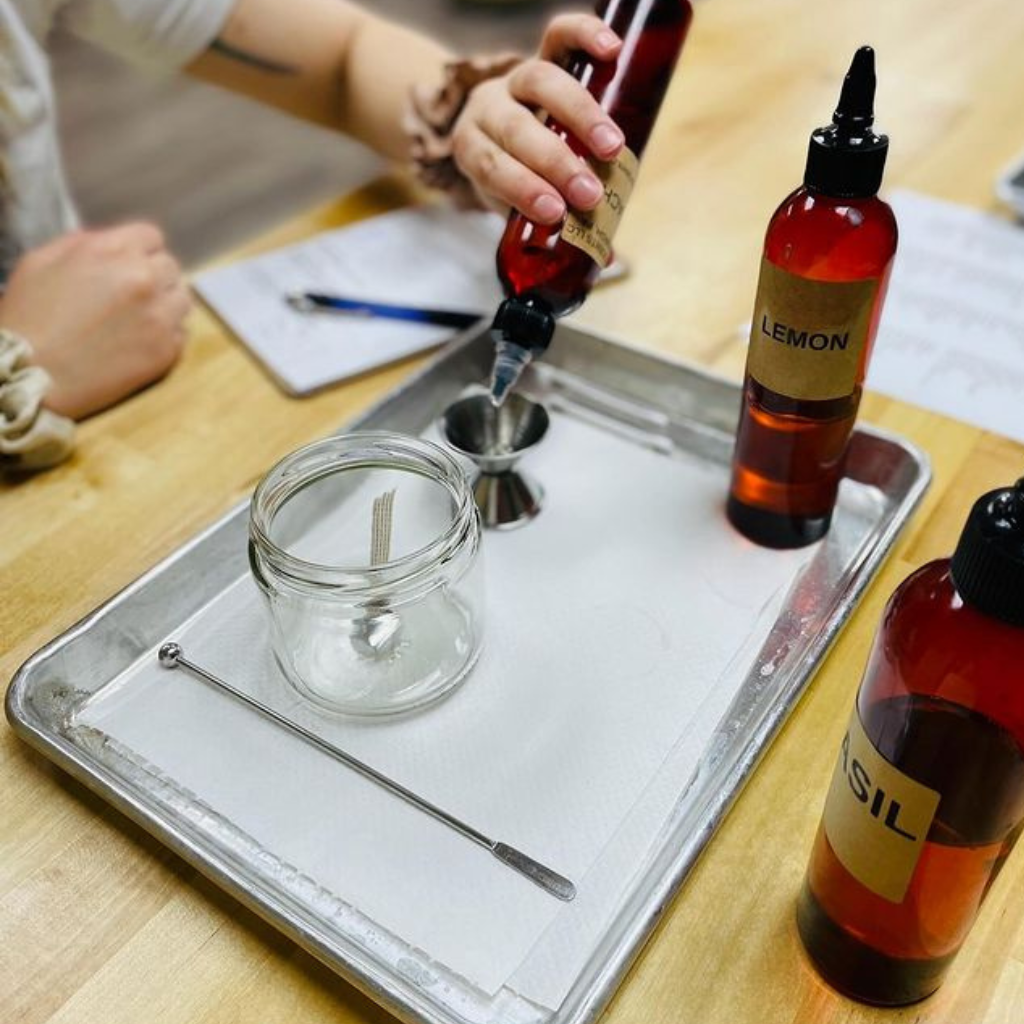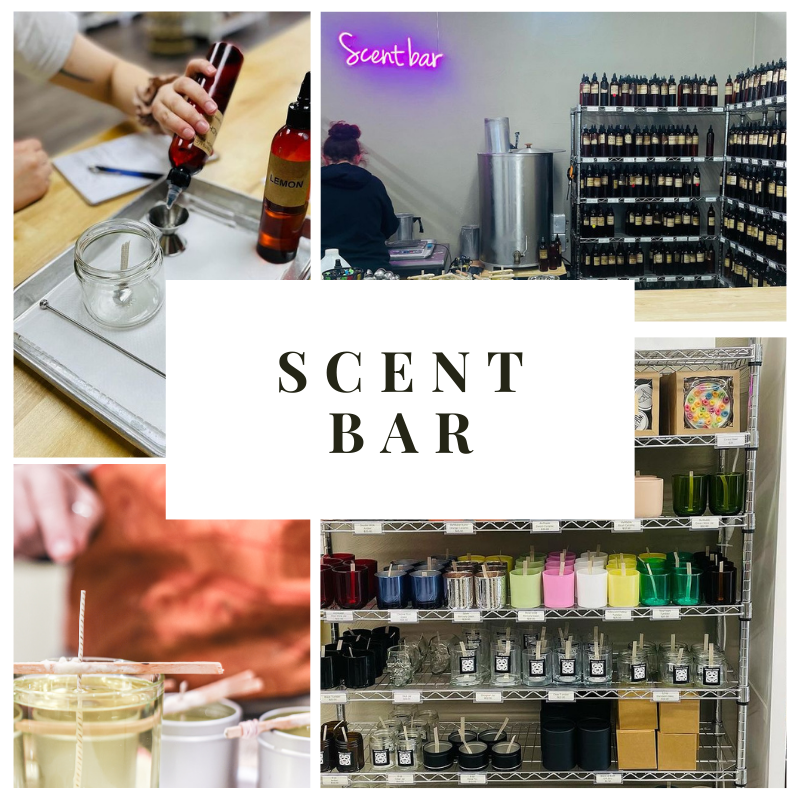 Come in anytime to make candles or your custom-scented products!! You can schedule private events at the shop during after hours, but while the shop is open you can always walk-in and use the scent bar to make candles or scent over 25+ other items!